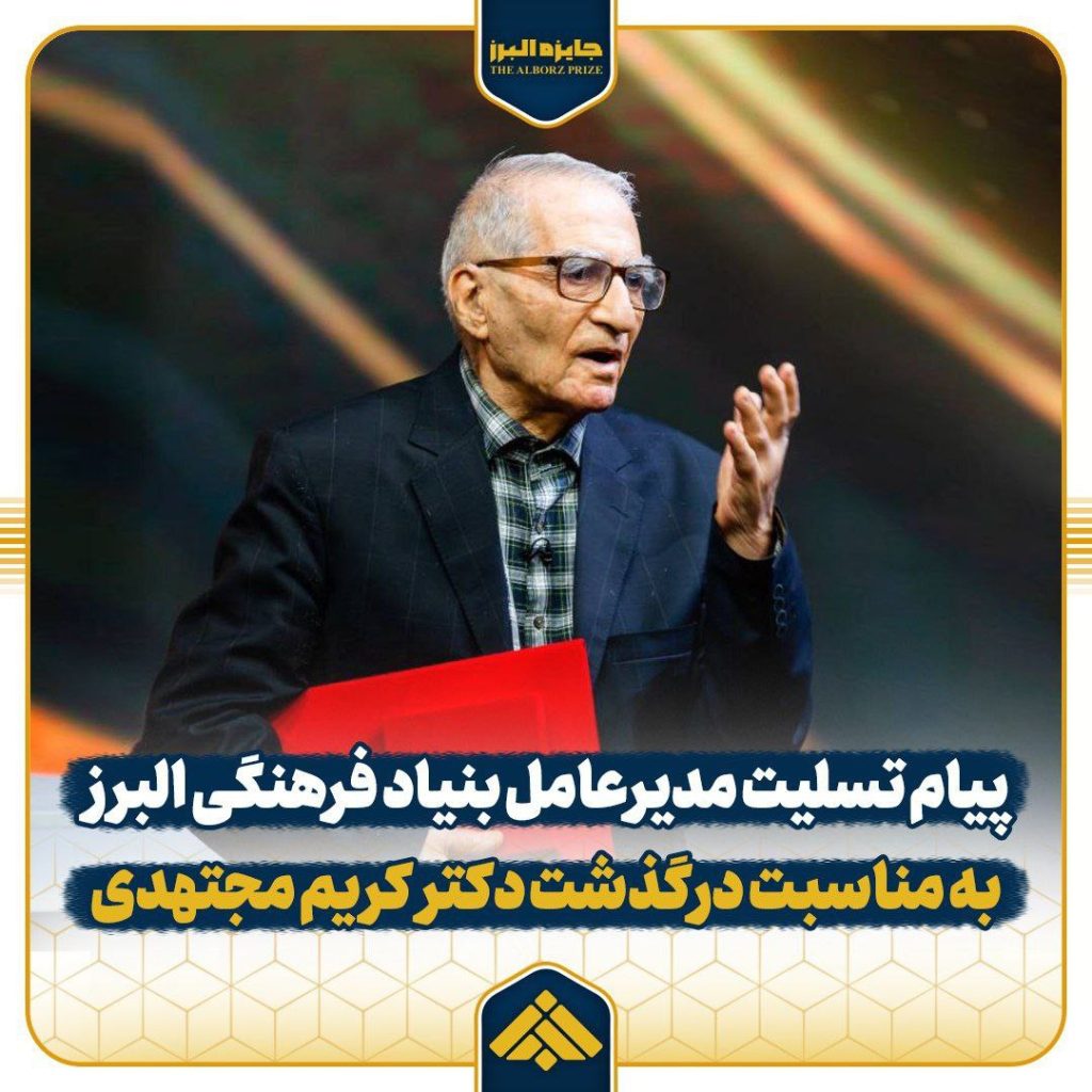 پیام تسلیت مدیرعامل بنیاد فرهنگی البرز به مناسبت درگذشت دکتر کریم مجتهدی فیلسوف برجسته معاصر و برنده جایزه البرز ۱۴۰۰